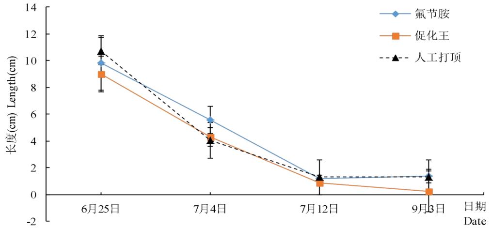 3.5.2 不同化學(xué)打頂劑對(duì)不同品種主莖增長量的影響