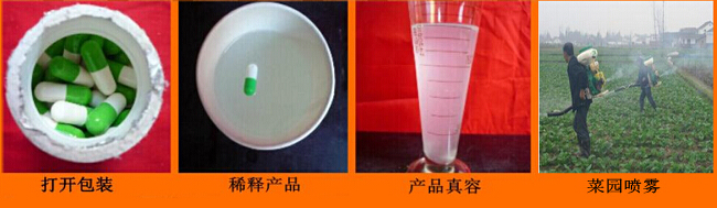 蔬菜壯莖靈膠囊:每瓶60粒,在15公斤--30公斤水中加本品膠囊一粒。可使蔬菜苗長勢茂盛,桿莖粗壯、葉片肥厚,高產(chǎn)優(yōu)質。保鮮期長。用于甘藍、芥菜、芹菜、黃花、大白菜、苴蓮、茼蒿、大青菜、韭菜、空心菜、菠菜、油麥菜等各種無公害蔬菜。對身價高的蔬菜品種可在15公斤水中加本膠囊2--3粒施用,效果更佳。本品PH值中性,遵照使用要求稀釋后噴霧,亦可以和各種農(nóng)藥及葉肥混合使用。稀釋液存放保質期30天。